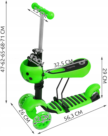 Children's scooter with seat, ADJUSTABLE