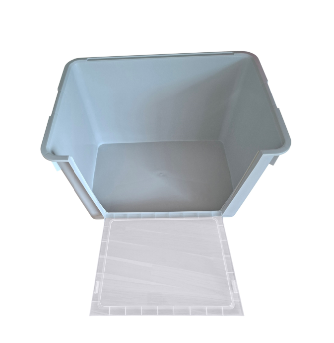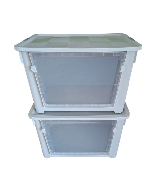 Ta praktična siva škatla z velikostjo 58 × 41 × 36 cm je popolna rešitev za urejeno shranjevanje oblačil, knjig, igrač, športnih pripomočkov in drugih predmetov. Zahvaljujoč prozorni stranski odprtini z vrati lahko hitro dostopaš do vsebine, ne da bi moral odstranjevati pokrov.