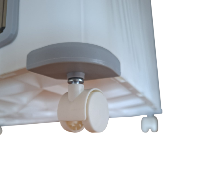 Škatla je izdelana iz kakovostne trpežne plastike, vključuje pokrov, kolesca in sprednja vrata, zato jo lahko enostavno premikaš in uporabljaš v različnih prostorih – od garderobe do garaže ali otroške sobe.